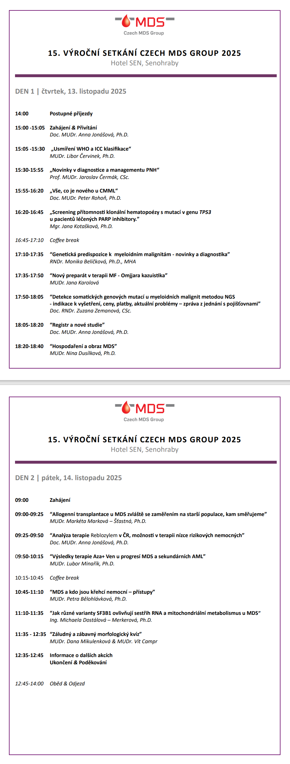 15. VÝROČNÍ SETKÁNÍ CZECH MDS GROUP - 13. – 14. listopadu 2025