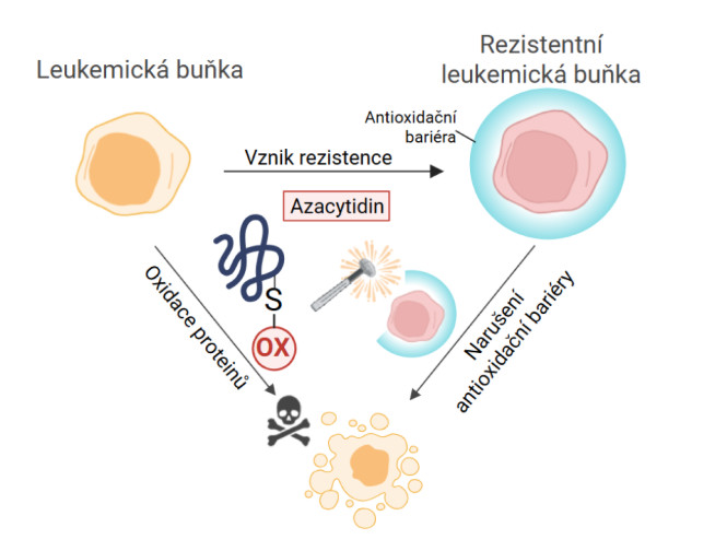 Čeští vědci popsali mechanismus, proč může u AML časem selhávat léčba azacytidinem: lék poškozuje leukemické buňky přes oxidaci bílkovin, zatímco rezistence vzniká posílením antioxidačních mechanismů. Z klinického pohledu to otevírá prostor pro biomarkery rezistence a racionální návrhy kombinací, které by účinnost terapie prodloužily. Více ZDE